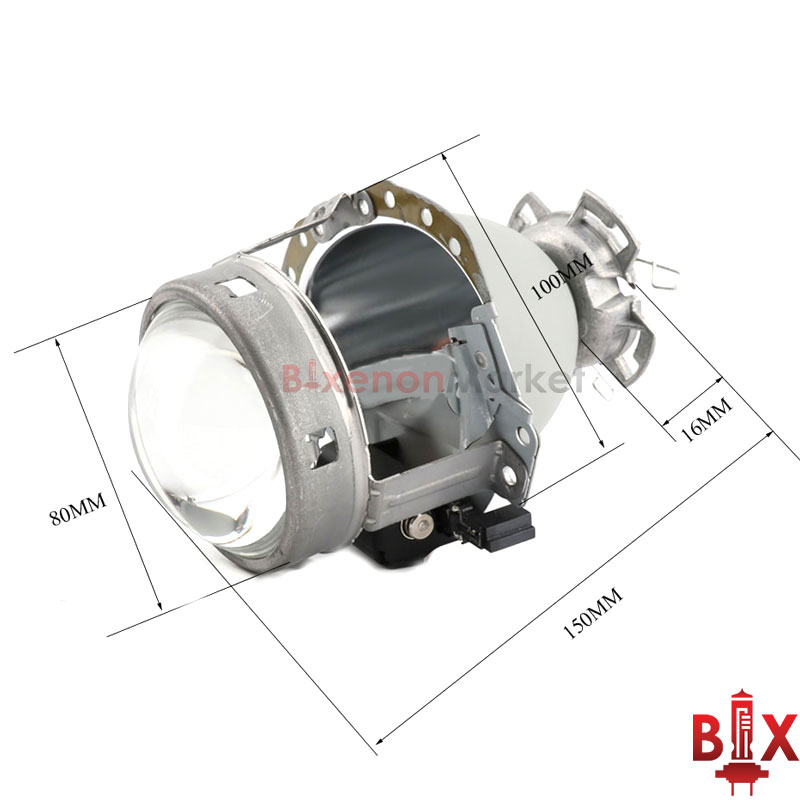 Устройство состоит из отражателя, линзы и шторки с электромагнитным приводом. Шторка в неактивном состоянии отсекает часть пучка, формируя пятно ближнего света. Для включения дальнего света на соленоид шторки подается ток и она опускается, открывая путь остальным лучам. В качестве источника света может использоваться ксеноновая или светодиодная лампа с цоколем D2s.