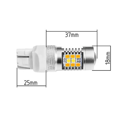 Светодиодная лампа ДХО + поворотник 7443-W21/5W-T20 имеет два типа ярких диодов, 2 стабилизатора и улучшенный теплообмен.